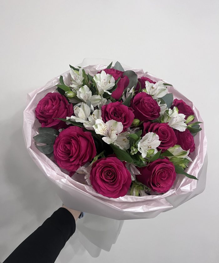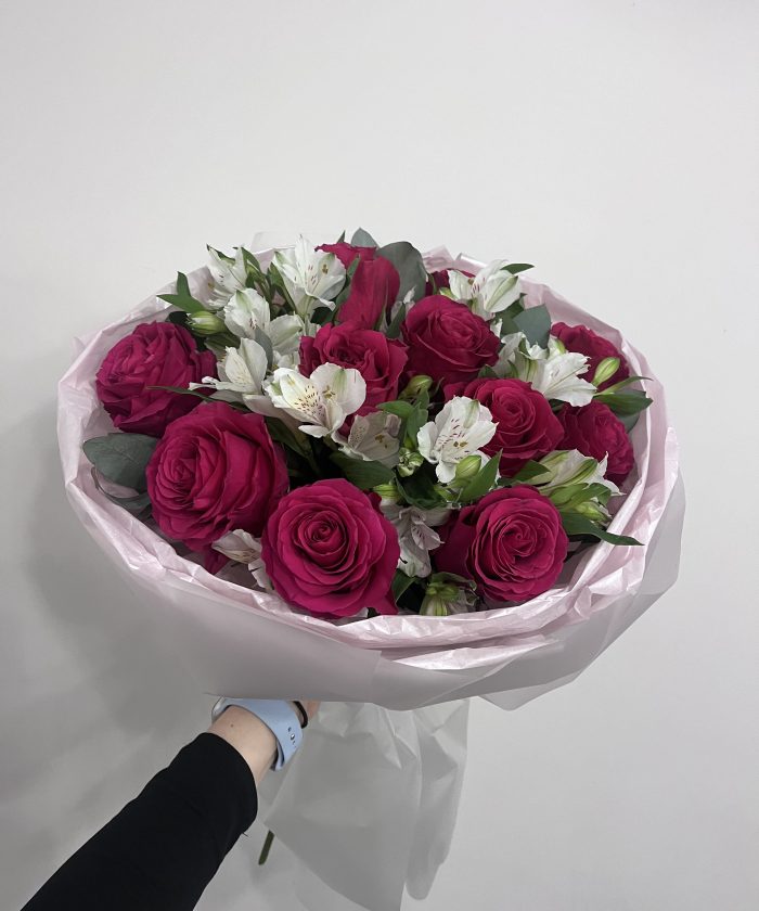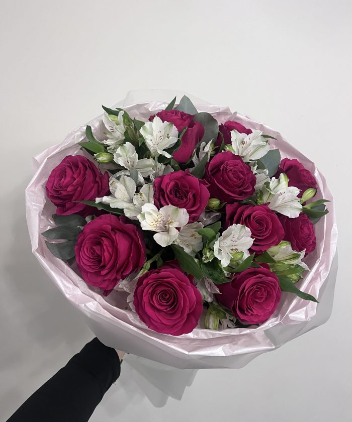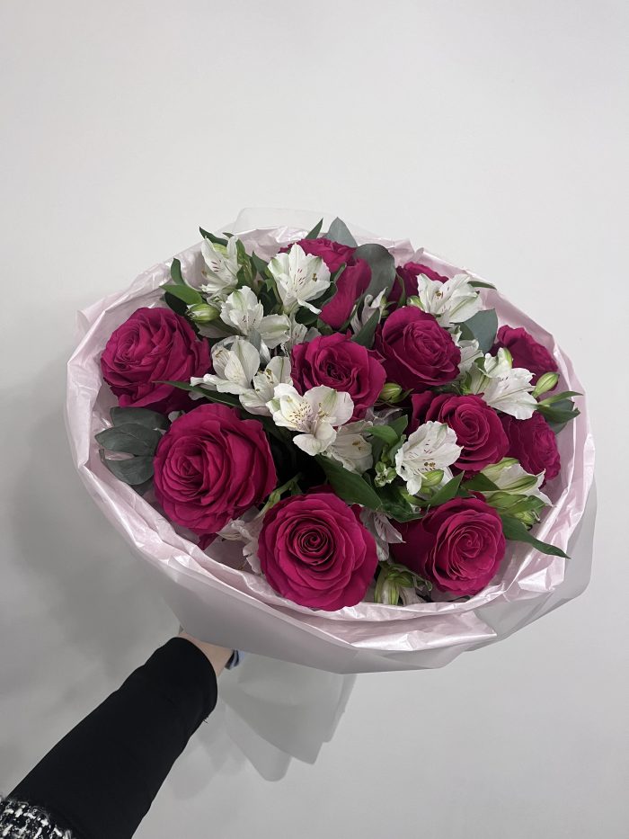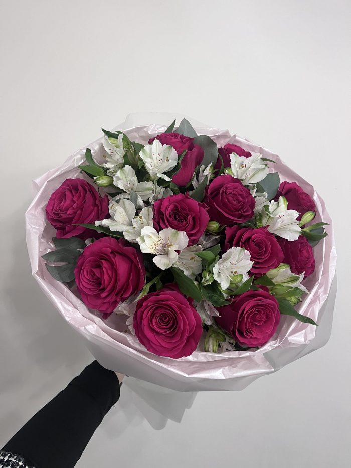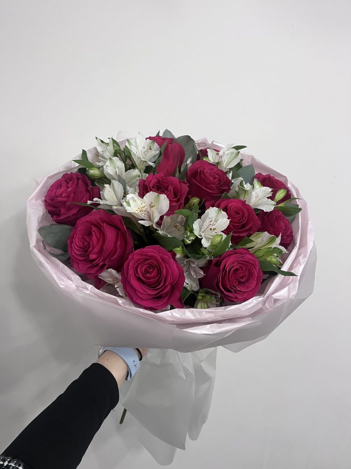 Состав букета: альстромерия, одноголовая Роза, эвкалипт
